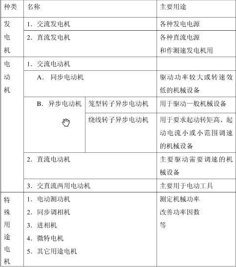 產(chǎn)品知識 電動(dòng)機(jī)按功用分類及其主要用途表
