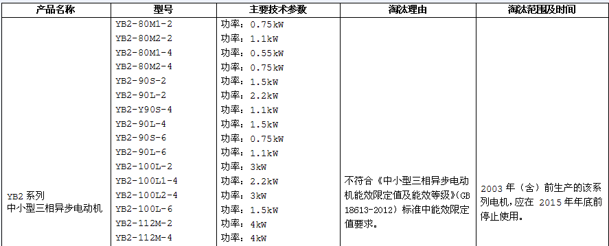 在上圖之中大家看到在淘汰范圍及時間里面有這么一句“2003年(含)前生產(chǎn)的該系列電機,應在2015年年底前停止使用”。這樣就規(guī)定了在2003年之后生產(chǎn)的機器還可以使用。也請大家放心使用。