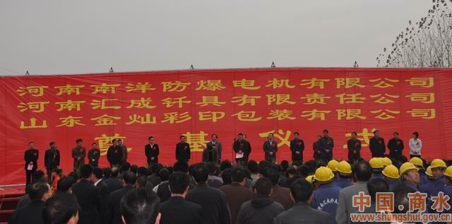 11月14日上午,縣工業(yè)集聚區(qū)彩旗飄飄,軍樂陣陣,南洋防爆機電、河南匯成釬具、滕州金燦彩印等三家招商引資企業(yè)舉行奠基儀式。縣委書記劉政帶領(lǐng)縣四個班子領(lǐng)導出席開工典禮并為三個項目培土奠基。