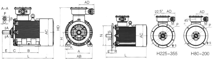 YBK2(YBK3)系列煤礦井下用隔爆型三項異步電動機主要使用在采掘面以下,視為煤礦井下采掘工作面機械設(shè)計的專用電機,機座有鋼板焊接形成,風(fēng)罩,接線盒、絕緣結(jié)構(gòu)采取加強措施。YBK2系列煤礦井下用隔爆型三項異步電動機按GB3836.2《爆炸性氣體環(huán)境用電氣設(shè)備 第2部分 隔爆型“d”》的規(guī)定,制成隔爆型,防爆標志為“Exdl”。主要用于煤礦井下惡劣工作環(huán)境。YBK2系列煤礦井下用隔爆型三項異步電動機除機座、風(fēng)罩、接線盒有特殊要求外,其余如果氣體性能、安裝尺寸、額定功率等均與YB2系列電機相同。