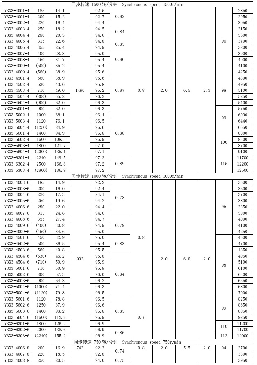 型譜中帶有括號的規(guī)格電機(jī)溫升按F級(105K)考核,其余規(guī)格可按B級(80K),如要求括號中功率規(guī)格的溫升按B級(80K)考核,型號應(yīng)當(dāng)向下順延一檔。
