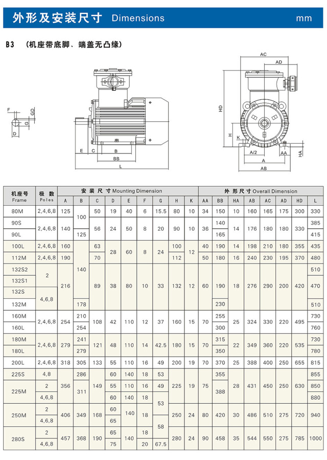 防爆電機(jī)型號(hào):YBX3/YBX4(三級(jí)或二級(jí)能效)